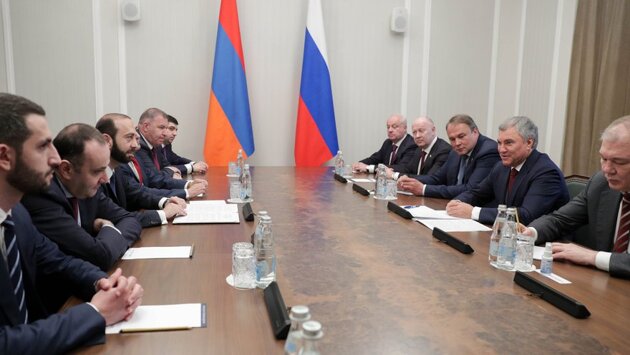 Спикер Госдумы Вячеслав Володин в понедельник встретился с председателем Национального собрания Армении Араратом Мирзояном. Стороны обсудили состояние двусторонних отношений, а также ситуацию вокруг Нагорного Карабаха.