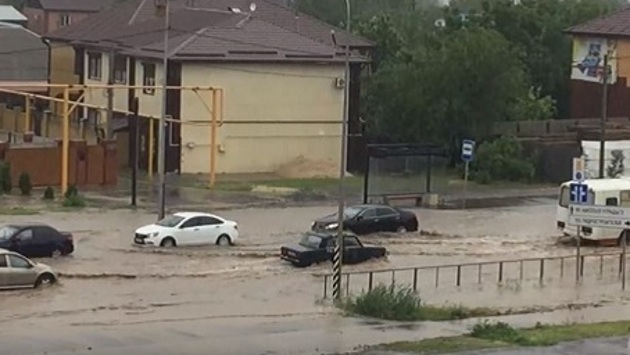 В Волгограде из-за ливня затопило дорогу к дому губернатора
