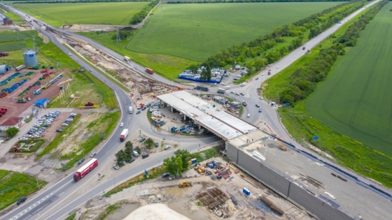 Ростовская область, 7 июня 2021. DON24.RU. Строительная готовность новой транспортной развязки над Сальским кольцом на трассе М-4 «Дон» под Батайском составляет 70%, сообщили в правительстве Ростовской области. Работы на объекте на участке 1072 – 1091 км автомагистрали «Дон» ведет АО «Донаэродорстрой» по заказу госкомпании «Автодор». На объекте возвели пять из шести опор, смонтированы пролетные строения, уложены балки на три из пяти пролетов. Параллельно строятся съезды на федеральную трассу для автомобилей, которые будут следовать в сторону Москвы и Краснодара. Новая развязка будет введена в строй осенью 2021 года. Она позволит разделить транспортные потоки: транзитный транспорт по направлению Краснодар – Москва и Москва – Краснодар будет запущен над Сальским кольцом, местный трафик пройдет внизу. Модернизация пути проводится в рамках обхода Аксая. Этот крупнейший на Дону инфраструктурный проект позволит разгрузить транзитный поток на подъездах к Ростову-на-Дону и Аксаю, сообщил заместитель губернатора Ростовской области Виктор Вовк. Ранее сообщалось, что на ПМЭФ предложили оборудовать обход Аксая съездом к Старочеркасской.