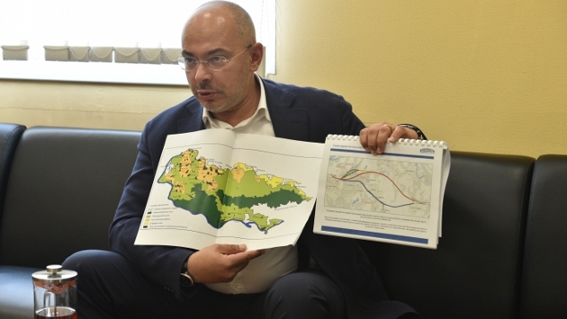 Потом Николаев продемонстрировал настоящую карту строительства и обратил внимание на то, что будущая дорога – всего лишь тонкая красная нить в верхнем углу, не затрагивающая особо охраняемые темно-зеленые зоны. Магистраль пройдет лишь по небольшому участку рекреационной зоны и территории агроландшафтов.
