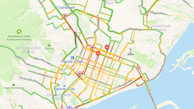Советский проспект встал в пробке из-за двух ДТП. Информацию опубликовал сервис «Яндекс.Карты» днём в воскресенье, 11 июля.