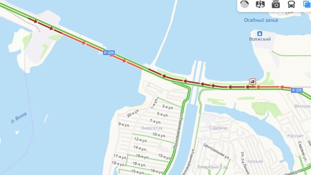 От Волжского она начинается прямо с поста ДПС, и тянется до въезда в Волгоград. По словам очевидцев, в разгар дня на мосту сломался УАЗик, везущий трубы. Он направлялся в сторону Волгограда.
