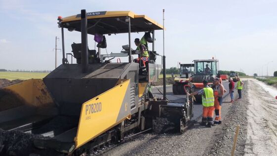 Всего будет уложено 1700 тонн асфальтобетона. Сейчас идет устройство первого слоя толщиной 8 см. На объекте круглосуточно задействовано более 120 человек и около 70 единиц автомобильной и строительной техники.