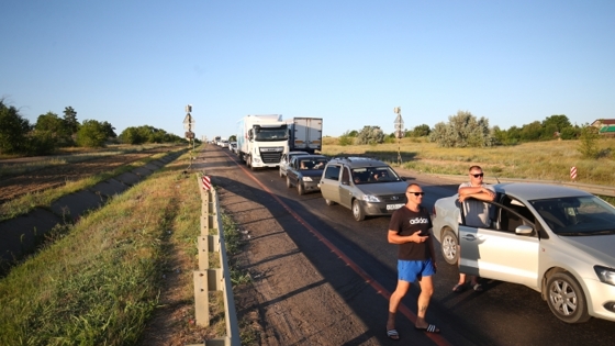 В Волгоградской области на трассе под Дубовкой собралась гигантская пробка