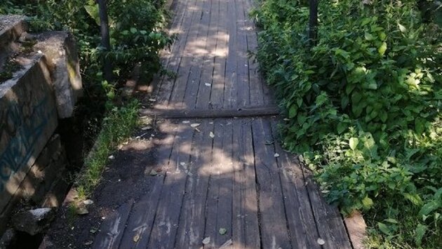 В образовавшихся на мосту дырах можно легко сломать ногу.