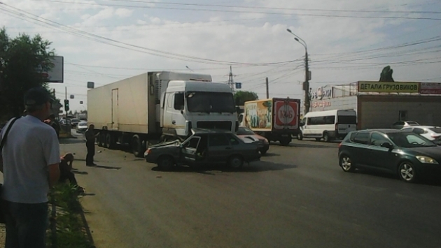 На западе Волгограда грузовой автомобиль протаранил легковушку