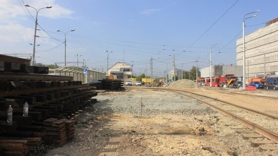 "При реконструкции участка было демонтировано, разобрано и вывезено 350 метров одиночного пути, уложено 349 метров нового пути. Произведено предварительное выпрямление пути в плане, выправка пути в профиль, сварка стыков. Согласно проекту для устройства посадочных площадок, трамвайные пути были смещены на 6 метров", — говорится в сообщении.