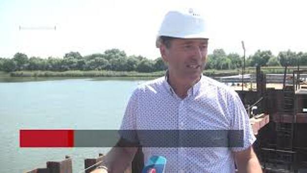 Ростовская область, 25 августа 2021. Телеканал «ДОН 24». Обход Аксая начинается от Новочеркасской развязки. Его протяженность 35 с половиной километров. Это будет новый скоростной участок автомагистрали с шириной - от четырех до шести полос , с освещением и барьерным ограждением , установят и шумозащитные экраны. Глубина выемки грунта в отдельных местах достигает порядка 30-35 метров, это самые большие точки, и они в районе хутора Большой Лог. Олег Иванов, представитель компании-подрядчика: "Привлечены у нас на объекте порядка 500 единиц техники, работают в двухсменном режиме. Также задействовано порядка 2 500 человек, это ИТР и рабочих. На сегодня мы идем с опережением графика. Будем стараться как можно раньше ввести этот обход Аксая, чтобы было удобно всем автолюбителям". Аксайский обход пересекает дорогу Большой Лог- Новочеркасск: таким образом, старая останется "сверху", а новая - пройдет снизу. Дорожники перекроют реки Аксай, Черкасская и Дон, чтобы выйти на 1072-ом километре, это рядом с Волгодонской развязкой. Почти двухкилометровый мост соединит берега Дона в районе Камплицы, а тут уж и до Старочеркасской рукой подать. В июне, на площадке Петербургского международного экономического форума губернатор Василий Голубев на встрече с председателем правления госкомпании "Автодор" Вячеславом Петушенко предложил сделать и удобный съезд от обхода Аксая к станице Старочеркасской. Есть договоренность, что в ближайшее время в региональном правительстве и госкомпании внимательно изучат варианты и определятся с местом расположения съезда. Сейчас мы на временной площадке для строительства одной из двух русловых опор нового моста. Олег Плешаков, заместитель директора Ростовского филиала ГК "Автодор": "Здесь выполнен комплекс определенных мероприятий и начали уже погружать сваи. Надеемся, что через год, когда вы приедете сюда, мы будем стоять не на временном мостике, а уже ходить сверху и смотреть...видеть совсем другую панораму." Олег Роменский, представитель компании-подрядчика: "Сначала строилась эстакада, чтобы сюда подойти, также -на той стороне, соответственно. Дальше шпунт плюс нерестовый же период 2 месяца, да? когда нельзя здесь было работать. Он конечно, отодвинул нас, но это было проектом заложено, соответственно сроками, графиками." Работы здесь начали в октябре прошлого года. Эти опоры - буквально, основополагающие: не построив их, не продвинуть пролётное строение.