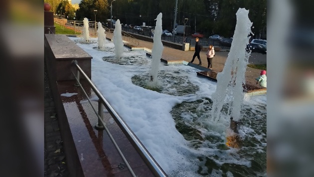 Вандалы залили пену в фонтан на Рокоссовского