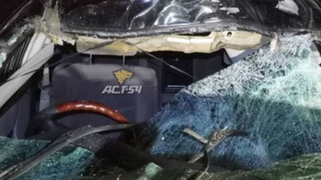 Удар был сильнейший. На фотографии видно, как животное покорёжило машину – передняя часть (капо, лобовое стекло, крыша) смяты.