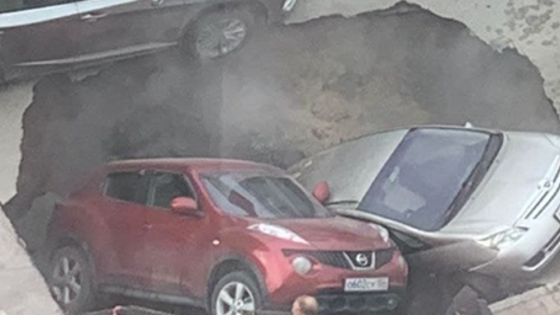 В Новосибирске на пересечении улиц Фрунзе и Семьи Шамшиных образовалась огромная дыра из-за прорыва трубы, в которую угодили одновременно две машины и третья застряла в ней передним колесом.