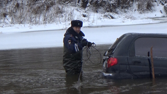 Сотрудники Госавтоинспекции Костромской области обследовали состояние дорог Нейского района, когда получили информацию о падении автомобиля с переправы через реку в районе деревни Нельшы. К мосту оперативно прибыли начальник ОГИБДД МО МВД России «Нейский» капитан полиции Илья Усов, инспекторы ДПС лейтенанты полиции Дмитрий Шобылев и Василий Смирнов, которые находились в трёх километрах от места происшествия. Стражи правопорядка увидели, что иномарку отнесло от переправы, и она застряла на отмели. Женщина-водитель смогла самостоятельно покинуть транспортное средство и уже направлялась к берегу. Полицейские помогли ей выбраться на сушу, после чего отправили на попутной машине домой. К этому времени к берегу на УАЗе с лебёдкой подъехал работник сельской администрации и стал помогать автоинспекторам вызволять машину из водяного плена. Илья Усов, надев специальный защитный костюм, вброд отправился к застрявшей иномарке и зацепил её тросом. Далее с помощью отечественного внедорожника они вытащили транспортное средство на берег, после чего отбуксировали в автосервис. Как оказалось, на мосту машину занесло. 61-летняя женщина-водитель попыталась вырулить, но не справилась с управлением: колесо иномарки попало между плит, после чего она накренилась и опрокинулась в воду. Автолюбительница от всей души поблагодарила сотрудников полиции, без промедления пришедших ей на помощь.
