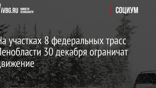 На участках 8 федеральных трасс Ленобласти 30 декабря ограничат движение