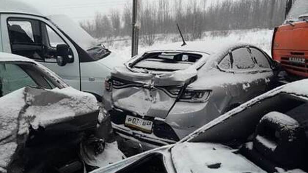 Видео с места аварии появилось 12 января. На кадрах видно, как в разных частях трассы стоят покореженные легковые автомобили и съехавшие в кювет грузовики. Везде на дороге валяются куски транспортных средств.