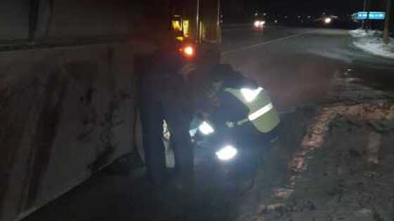Юрий Жуков помог заменить колесо, после чего на патрульном автомобиле сопроводил автобус до ближайшего шиномонтажа для диагностики.