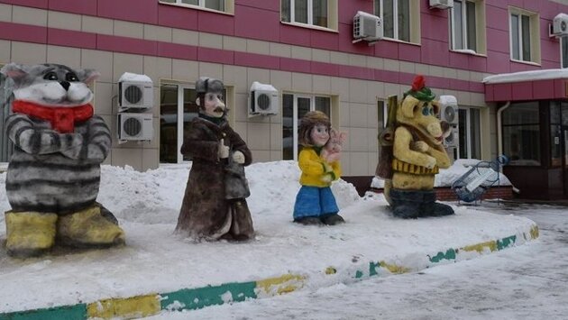 В Казани появились снежные фигуры героев мультфильма "Простоквашино"