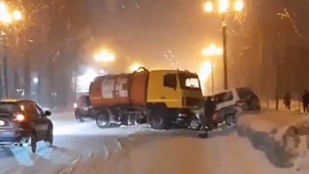 Инцидент произошел на улице Карла-Маркса в районе Питомника. Фото: скриншот с видео Дорожно-транспортное происшествие, в результате которого пострадали люди, произошло вечером 12 февраля. Именно тогда начался снегопад и на дороге образовался накат.По имеющейся информации, на улице Карла-Маркса в районе Питомника КАМАЗ с цистерной занесло и он в неконтролируемом движении выехал на встречную полосу. Там большегруз столкнулся с Nissan Murano, а потом с Mitsubishi Pajero. В результате аварии пострадали водители этих машин.