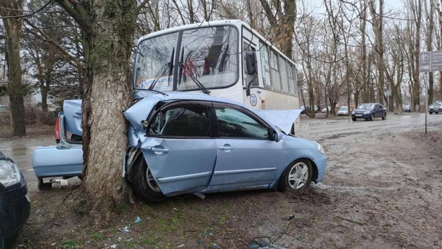 В Новочеркасске автобус с пассажирами протаранил легковушку