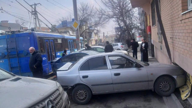 Машину откинуло в частный дом: в Ростове троллейбус влетел в припаркованные иномарки