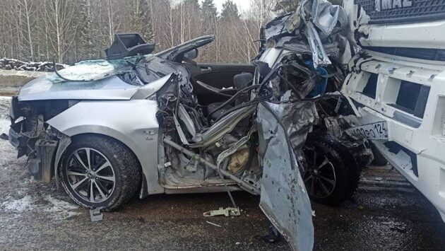 По предварительной информации, водитель «Хендай Солярис» двигалась со стороны Красноярска в сторону Канска и допустила выезд на встречную полосу. В это время ему на встречу ехал «КамАЗ». В результате женщина погибла, а её 32 -летний пассажир получил травмы.