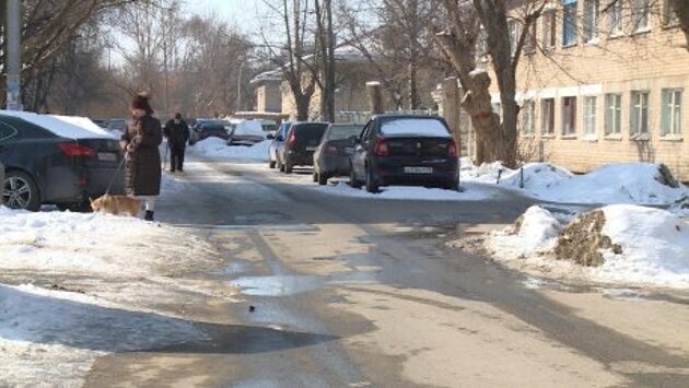 В 1-м проезде Лобачевского, который ведет к больнице № 5, многие пензенцы ходят по проезжей части, покрытой льдом. Пласты то тут, то там, шагать трудно, скользко. На обочинах высятся сугробы, а где их нет - припаркованы машины.