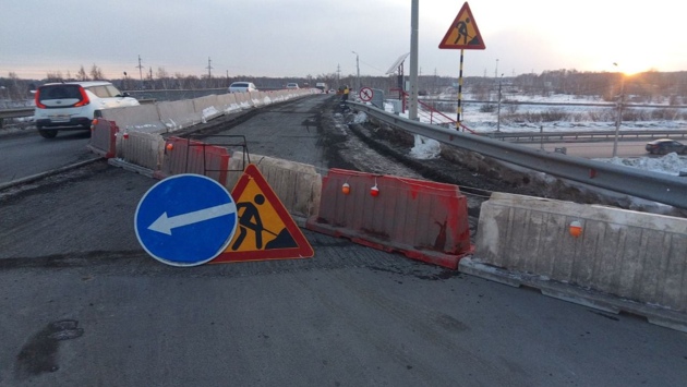 В Челябинске ремонтируют мост на Троицком тракте, движение – по одной полосе