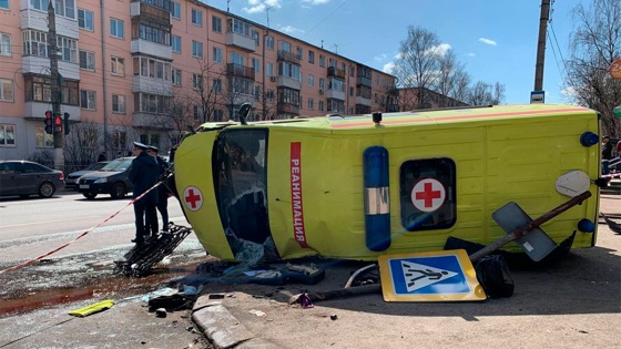 В Твери внедорожник столкнулся с автомобилем скорой помощи. От удара карета перевернулась, и оба автомобиля сбили пешеходов, которые стояли на тротуаре. По предварительным данным, пострадали семь человек, водитель скорой погиб. Трое пострадавших доставлены в больницу.