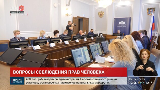 Ростовская область, 13 мая 2022. Телеканал «ДОН 24». Уполномоченный по правам человека в Ростовской области отчитался о своей работе за 2021 год. Круглый стол проходил в Заксобрании региона. В нем приняли участие руководители министерств, депутаты донского парламента, представители прокуратуры, МВД и общественных организаций. Говорили о главных темах: это социальное обслуживание населения, вопросы жилищно-коммунального хозяйства, в частности переселение граждан из ветхого аварийного жилья, а также оказание медицинской помощи заключенным. Сергей Михалев, первый заместитель председателя Законодательного собрания Ростовской области – председатель комитета по социальной политике: «Есть медицинские учреждения, которые обязаны оказывать услуги заключенным, у которых вообще нет терапевта, так что мы по этому докладу разработали рекомендации. Возможно, они во время обсуждения на собрании будут изменены, но мы постарались все разделы доклада в рекомендациях учесть». Отметим, что данные предложения уже направлены губернатору Василию Голубеву.