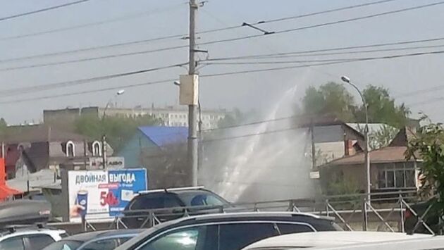 Фонтан из-под земли забил рядом с Ипподромской магистралью в Новосибирске