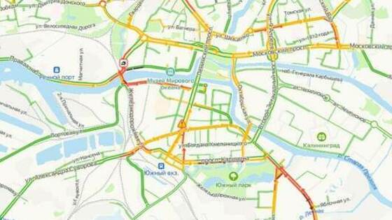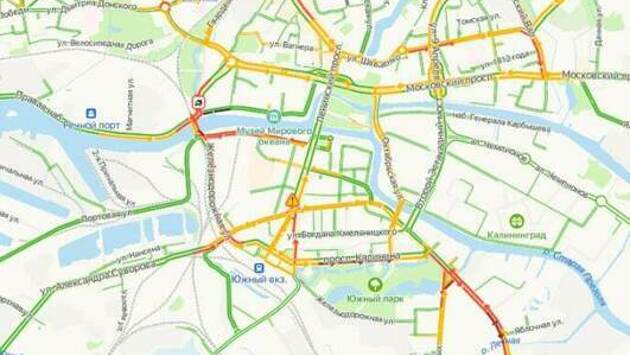 В Калининграде улица Железнодорожная днём в субботу, 14 мая, встала в километровой пробке. Об этом свидетельствуют данные сервиса «Яндекс.Карты».