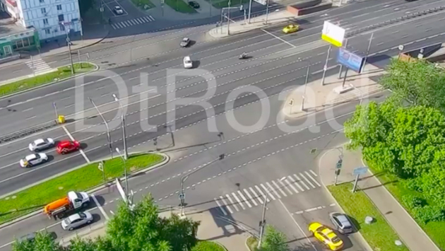 Столкновение со служебным мотоциклом ГИБДД попало на видео, которое было опубликовано в Telegram-канале «Дептранс. Оперативно».