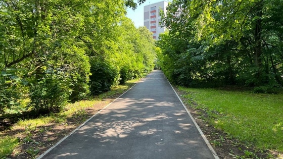 Представитель Общественного совета района Савёлки проверила качество ремонта пешеходной дорожки между 701 и 702 корпусами