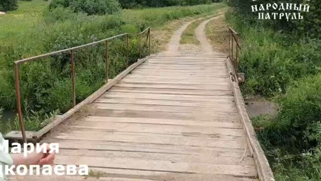 Проехать по этому мосту сейчас может лишь легковой автомобиль, и то с трудом. То есть пожарным, скорой помощи, грузовикам со стройматериалами здесь проезд закрыт. Есть дорога через поле, которую зимой еще попробуй расчисть (только за свой счет). Также можно перебраться на ту сторону вброд.