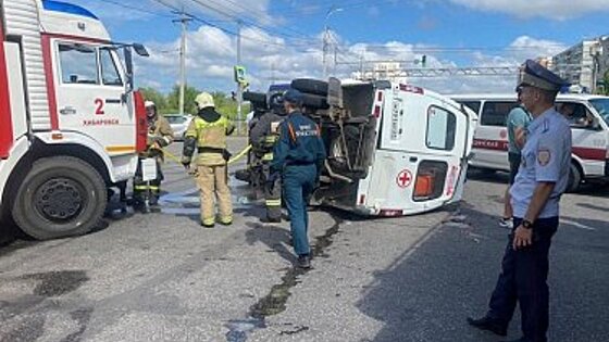 Ребенок и двое взрослых пострадали в ДТП с участием машины скорой помощи в Хабаровске