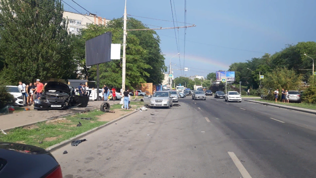 В Ростове иномарка попала в ДТП, врезалась в опору ЛЭП и четыре припаркованных авто, задев пешехода