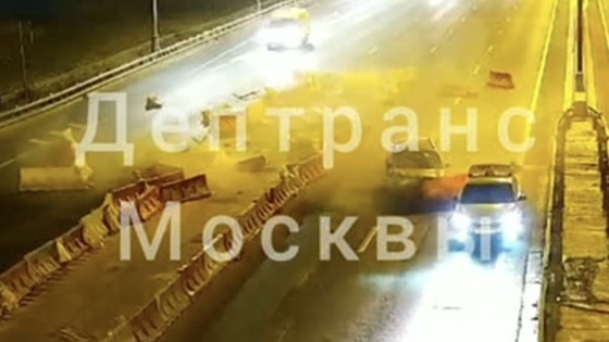 На 91-м километре МКАД автомобиль на полной скорости влетел в дорожные ограждения и попал на видео. Его публикует столичный Дептранс в Telegram-канале.