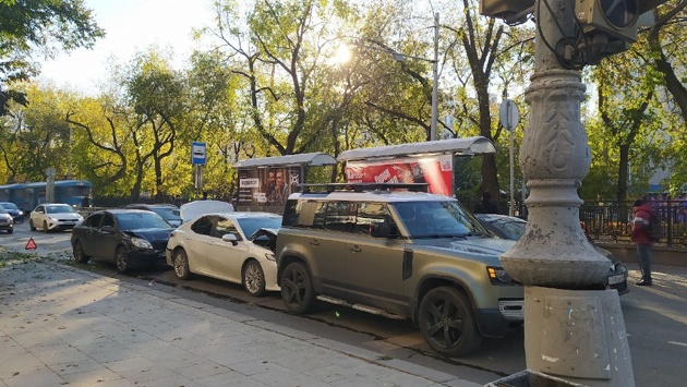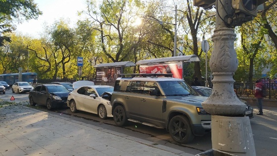 Как рассказал агентству очевидец, рядом с трамвайной остановкой столкнулись три иномарки, ехавшие в направлении площади 1905 года. Судя по снимкам с места аварии, ее причиной могла стать неправильно выбранная дистанция.