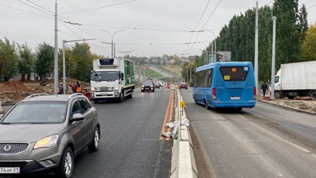 В настоящее время открыто движение автотранспорта от проспекта Никольского по трем полосам, от улицы Фучика – по двум, поскольку одна полоса перегорожена для выполнения строительно-монтажных работ на участке съезда в правую сторону, к нижней части улицы Гражданская.