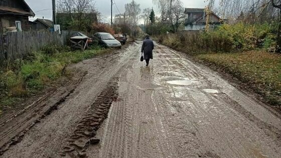 Местные жители неоднократно жаловались на плохое состояние дороги. В августе этого года ее отремонтировали с использованием щебня. Осенью на прилегающих земельных участках начались работы по водотведению. Мощные самосвалы быстро разрушили щебеночное покрытие и дорога снова стала непроходимой.