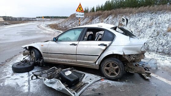 Там автомобиль столкнулся с грузовиком SCANIA — легковушку отбросило в сторону, после чего в нее врезался автомобиль KIA RIO, двигавшийся в попутном направлении. Травмы получили водитель и трое пассажиров BMW, из них двое детей — братья-близнецы 8 лет.