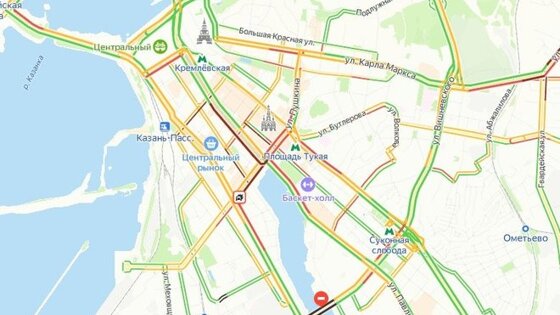 В Казани наблюдаются пробки в 7 баллов, об этом свидетельствуют данные сервиса "Яндекс.Карты".
