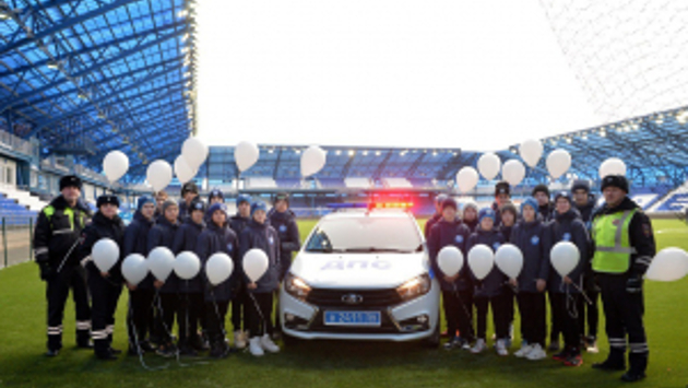 В Оренбурге инспекторы ГИБДД вместе с юными футболистами выпустили в небо воздушные шары в память о погибших в ДТП