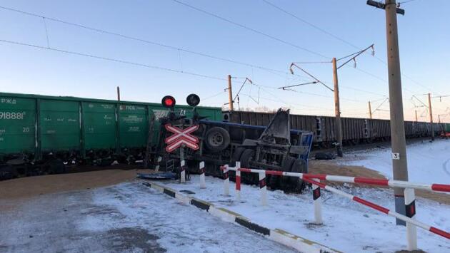 Утром в среду на железнодорожном переезде между станциями Краснозерское и Хабары в Новосибирской области водитель грузового автомобиля с прицепом выехал на пути на запрещающий сигнал светофора перед приближающимся грузовым поездом. Машинист применил экстренное торможение, но расстояние было недостаточным, и столкновения избежать не удалось. От удара прицеп автомобиля был отброшен на соседний путь под еще один проходящий грузовой поезд.