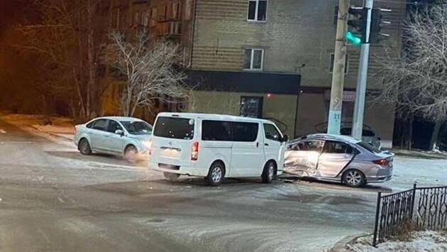 В Чите микроавтобус протаранил иномарку на перекрёстке