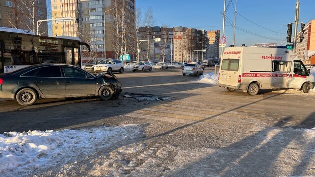 В Кирове лишенец на «Ауди» «отправил» скорую помощь в светофор