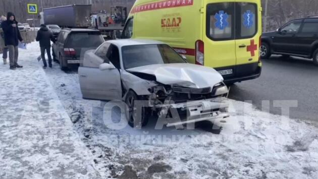 Установлено, что водитель автомобиля Toyota Mark ll совершал обгон и не справился с управлением, в результате чего совершил столкновение с автомобилем Honda Fit. Виновник аварии попытался скрыться с места ДТП, однако столкнулся с грузовиком Daf.
