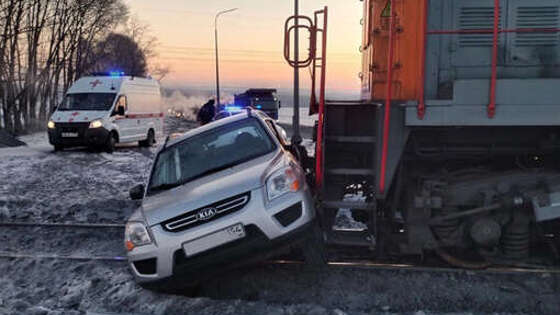 В Искитимском районе Новосибирской области произошло столкновение грузового поезда и внедорожника Kia на железнодорожном переезде, сообщается в Telegram-канале Западно-Сибирской транспортной прокуратуры. "На путях необщего пользования на регулируемом железнодорожном переезде допущено столкновение грузового поезда с легковым автомобилем марки Kia. По предварительным данным, имеются пострадавшие", - отмечается в сообщении ведомства. Судя по фотографии, опубликованной прокуратурой, в левый борт внедорожника Kia на переезде врезался маневровый тепловоз, который протащил автомобиль по рельсам и остановился через несколько метров после пересечения с автомобильной дорогой. По факту происшествия проводится проверка. Ранее стало известно, что в Иркутской области школьник погиб во время катания на снегокате, привязанном к автомобилю ВАЗ.