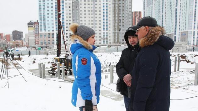 Сорокина посетила стройплощадку. Проект предусматривает трёхэтажное здание на 224 ребёнка.