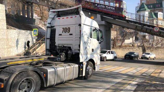 В ближайшее время ЦОДД Владивостока и администрация города планируют запретить большегрузам съезжать с Золотого моста в сторону Всеволода Сибирцева. На мосту установят знаки, а под опорой фуникулера – ограничение по высоте в 3,5 метра. По словам начальника Управления ГИБДД по Приморскому краю Юрия Колесникова, именно в этом месте водители фур часто нарушают правила дорожного движения и провоцируют ДТП: фуры не проходят по габаритам под эстакадой фуникулера, выезжают на встречную полосу и парализуют движение, а иногда и вовсе повреждают саму эстакаду. Кроме того, часто большегрузы не вписываются в узкий поворот с Всеволода Сибирцева в Кирочный проезд в сторону Светланской. Кроме того, на этом участке дороги собираются поставить делиниаторы. Они не дадут водителям нарушать правила и поворачивать налево после съезда с моста. Также в районе пересечения Всеволода Сибирцева, Пушкинской и Кирочного проезда сделают два островка безопасности для организации понятной схемы движения. Ранее сообщалось о том, что полпред президента в ДФО Юрий Трутнев остался недоволен новым мастер-планом Владивостока. Фото: Администрация Владивостока
