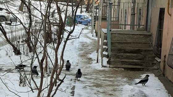 Вороны грабят открытые мусорные баки и бросают добычу на улицах Саратова